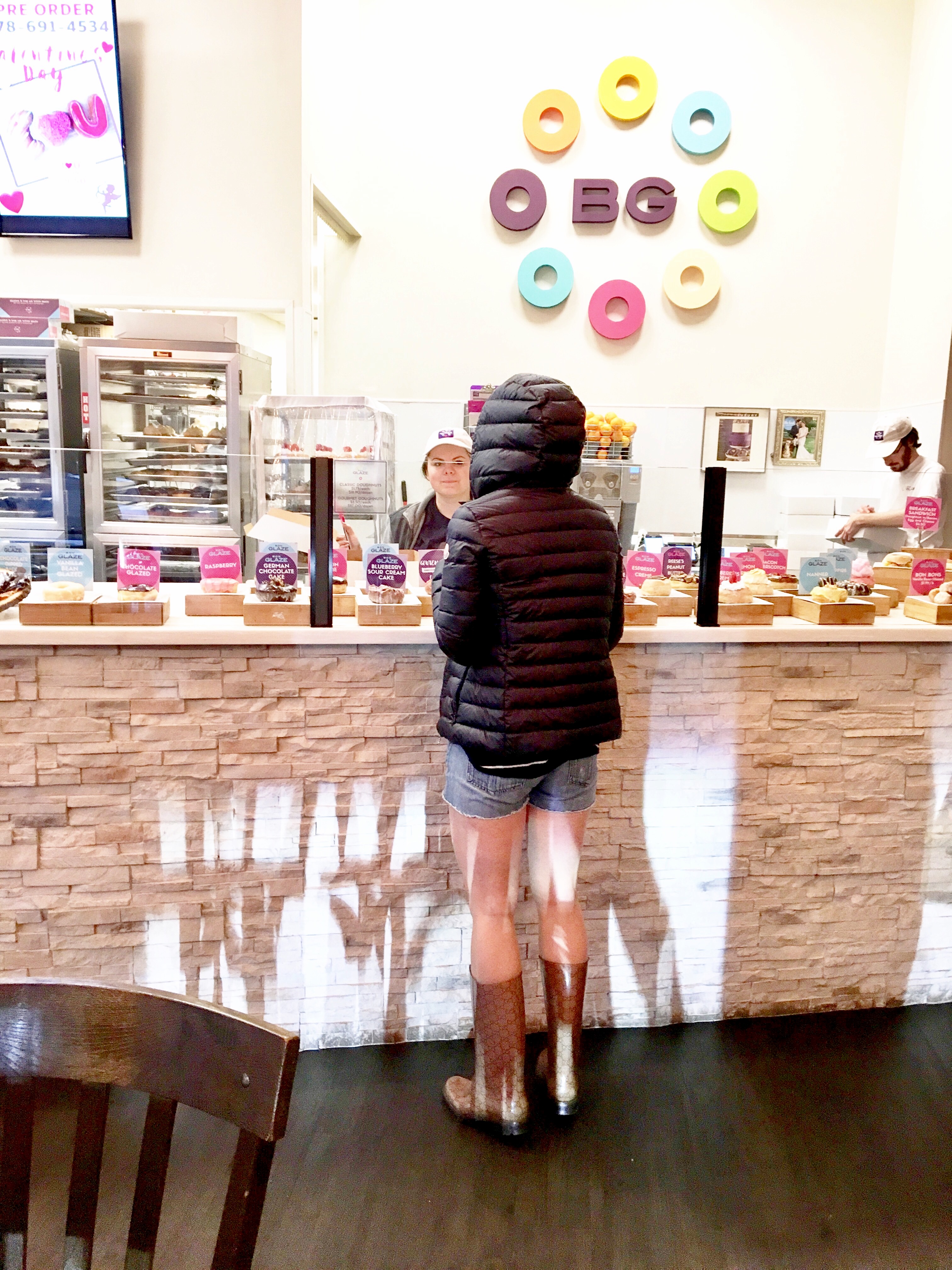 Here’s a look at the week in our closets. The star of this week’s style and just in time for all the rain last weekend were the pretty in pink Hunter boots. For last Saturday, I needed two pairs of rain boots and multiple outfits. One of our first stops last Saturday bright and early for the baby shower event prep was Bon Glaze to pick up almost one of every flavor of their yummy donuts for the baby shower (even my guys who were along for the ride Saturday morning had their favorite treat of vanilla bean and cinnamon sugar bon bons).